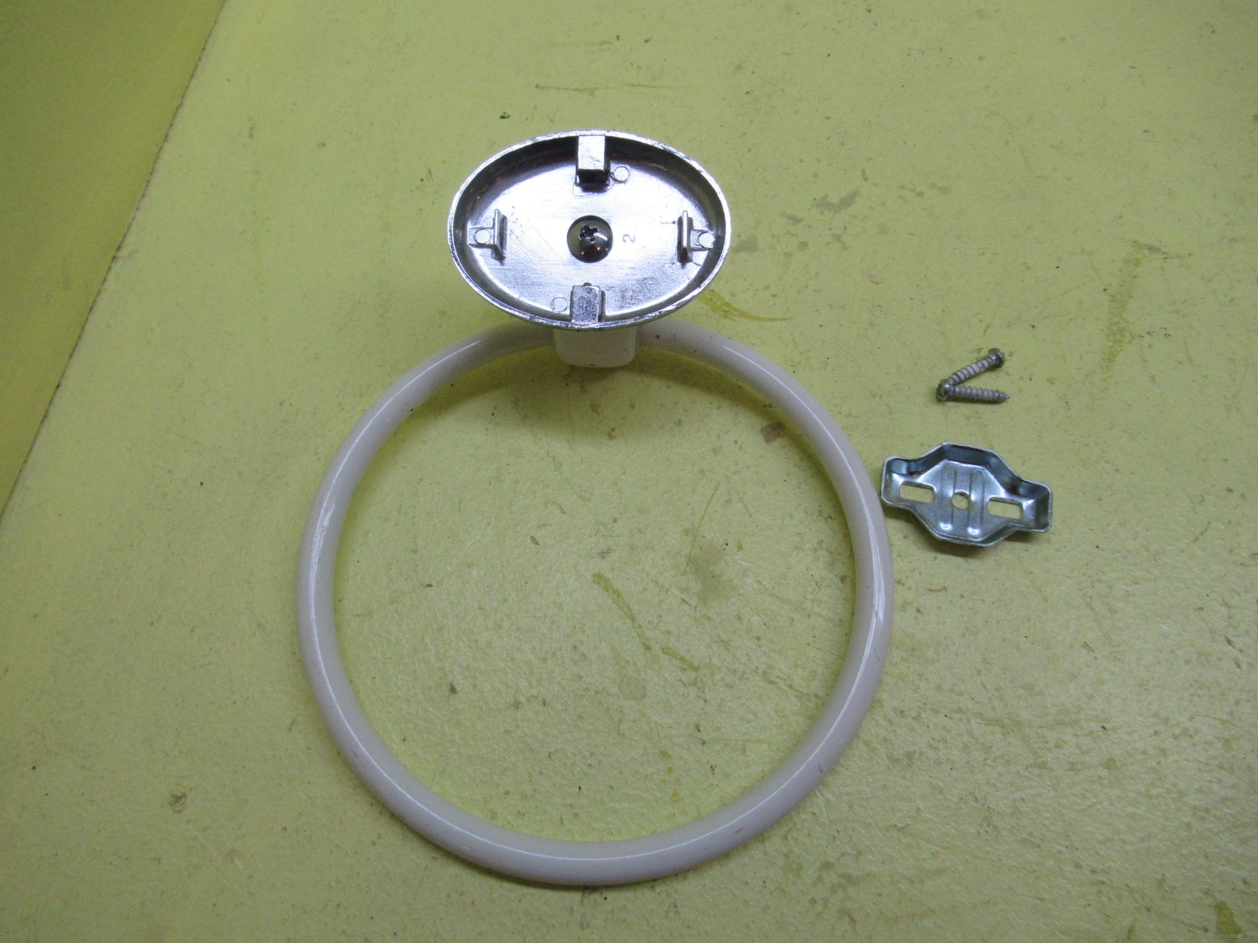 Off White Enamel Towel Holder with Oval Pate with Chrome Ring allow you to colour block your room in white.