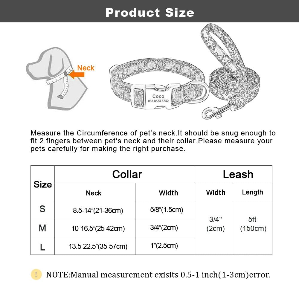 Type:Customized Pet Collar Nylon Personalized Dog Puppy Collar and Leash Pet ID Tag Nameplate Collar for Small Medium Large Dogs